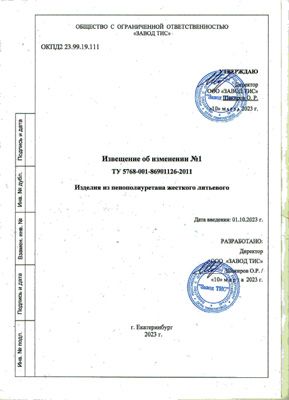 Извещение об изменении ТУ Изделия из пенополиуретана жесткого литьевого ППУ ТИС март 2023.pdf