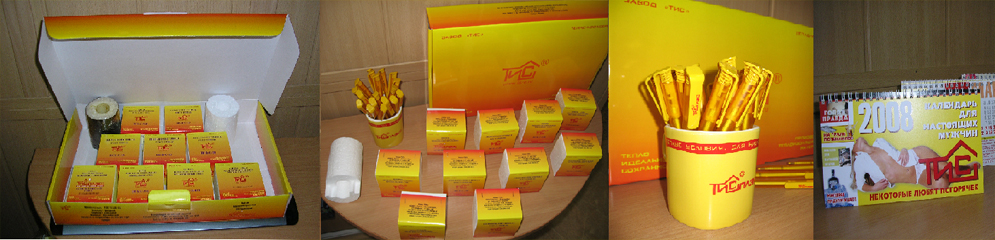 Уважаемые потребители теплоизоляционных материалов, Компанией "Тепло-изолсервис" (Завод "ТИС") подготовлены следующие рекламно-презентационные материалы: Образцы продукции производимой заводом "ТИС" упакованные в оригинальные красочные коробки, буклеты, брендированные канцелярские принадлежности и кружки, фирменные пакеты, фолдеры и перекидные календари.